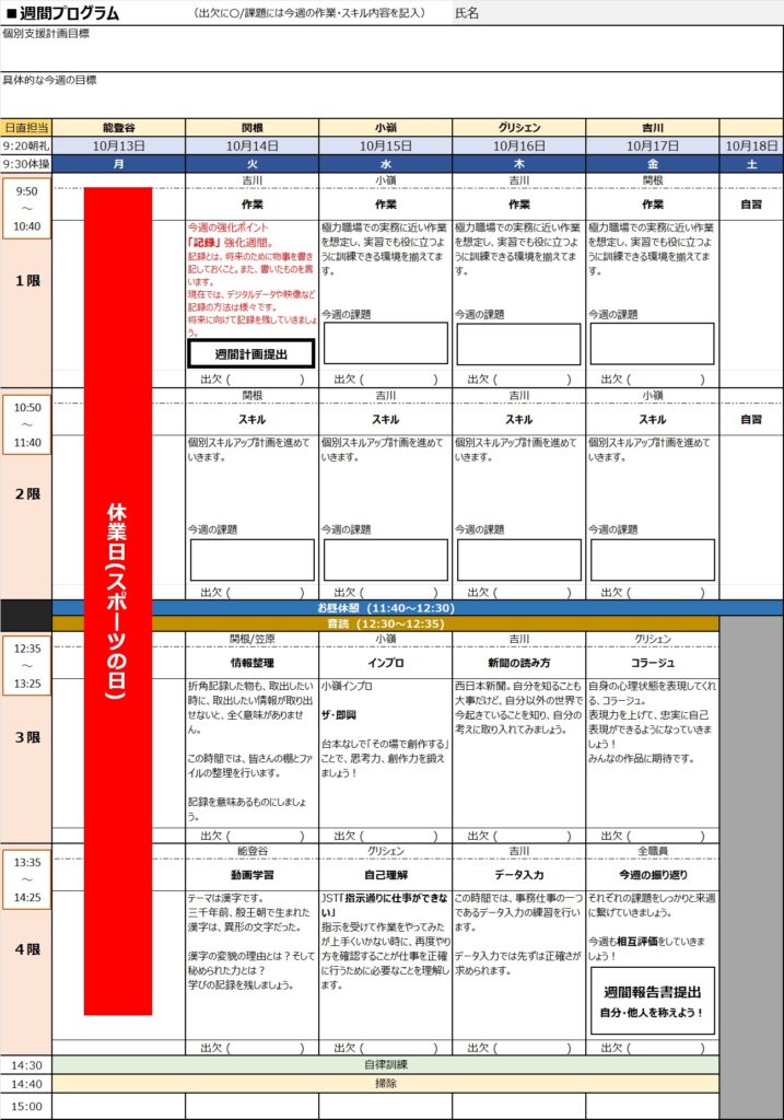 今週の週間プログラムです